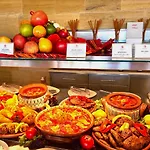 The hotel's restaurant not only serves the finest international and Bulgarian cuisine but also offers guests the chance to dine on a terrace overlooking the modern lobby. Available to guests is a diverse three-course menu, ensuring meals that are both delicious and memorable. The breakfast buffet is complimentary, allowing you to start your day on the right note without additional costs.